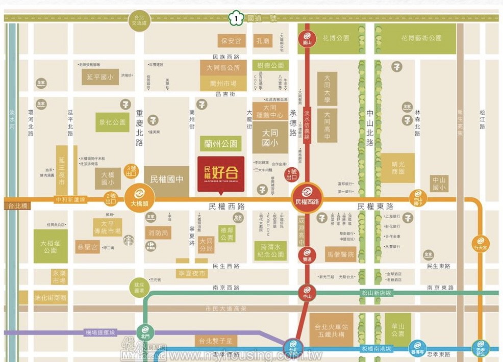 捷運大橋頭站1號出口150公尺(中和新蘆線橘線)